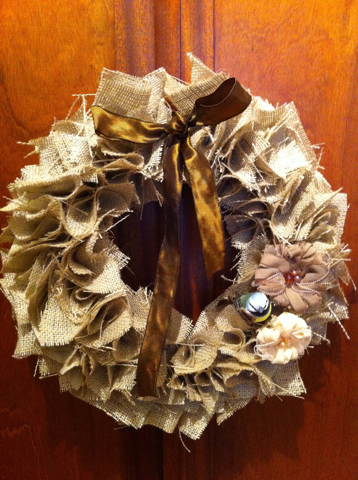 I saw this video on how to make a burlap wreath on YouTube