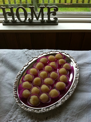 Put on a dish, wait overnight to make the little balls.